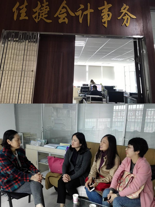 为进一步加强与用人单位的联系,了解行业发展动态,培养更多的紧贴市场需求的会计人才,财税金融系系主任朱琰和相关专业的负责人赴无锡佳捷会计事务所有限公司,看望了在该该企业工作的会计专业毕业生,受到了该所宿所长的热情接待。