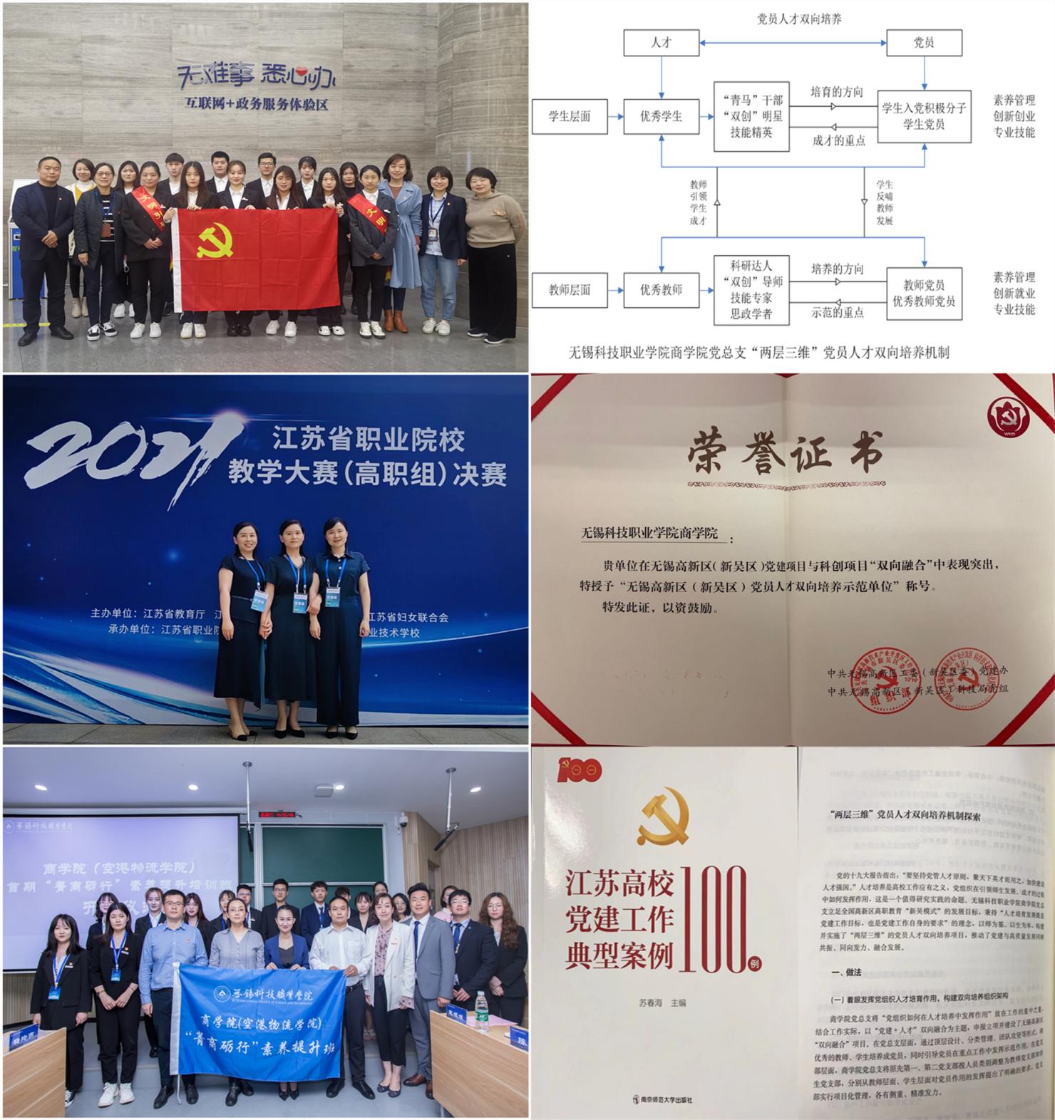 人才培养是高校工作的应有之义。在学校党委的正确领导下,商学院党总支秉持“人才培育既是党建工作目标,也是党建工作自身要求”的理念,以师为基,以生为本,构建并实施了“两层三维”的党员人才双向培养项目,推动了党建与高质量发展同频共振、融合发展。项目立足教师、学生两个层面,聚焦素养管理、创新创业、专业技能三个维度,将优秀的教师培养成党员或优秀党员,将学生骨干培养成入党积极分子或党员。29名教师党员示范引领,在省级高水平专业群、省级重大课题、省级教师技能竞赛、横向课题服务等方面均有突破,商学院在全校综合考核中连续六年获得“优秀”等次。学生在技能竞赛中先后获国家级、省、市级特等奖、一等奖等名次,多名同学获“省级学生干部、三好生”、“江苏好青年”、“中国大学生自强之星”等荣誉。注重运行模式的不断优化,通过“学史领航”、“党员积分制”、青蓝结对等做法,努力打造高质量发展的“红色引擎”,持续为我校省级高水平高职院校的成功创建和“新吴模式”战略的高质量实施贡献力量!