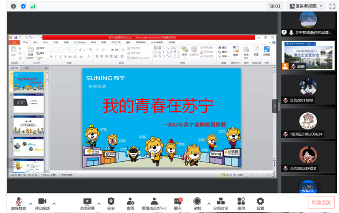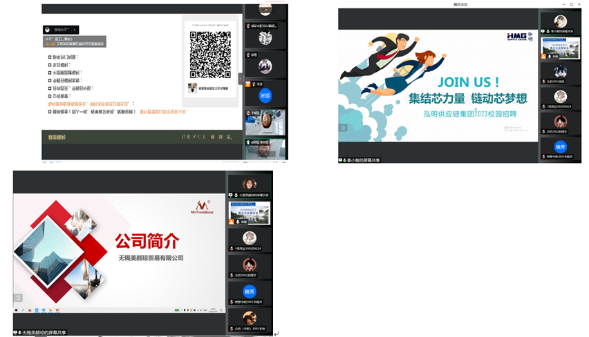 此次宣讲分两个会场,邀请了十余家高新区重点企业参与,参会企业中既有中国移动、中外运等央企、京东、苏宁等头部企业,也有如美颜琼等新兴企业,给学生提供了充分的选择空间,2020级全体师生、系主任、教科办相关人员参加了此次宣讲会。