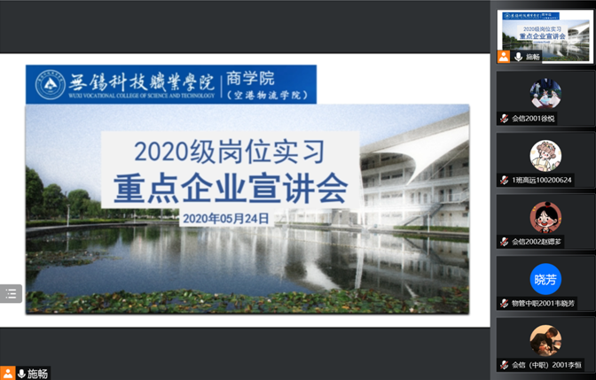 为切实做好学生实习及今后就业工作,大力构建学生与用人单位的交流平台,积极为高新区企业输送优秀人才,结合商学院岗位实习工作安排,在前期岗位实习动员大会和学生阅读招聘宣传资料的基础上,5月24日下午,召开了2020级岗位实习重点企业线上宣讲会。