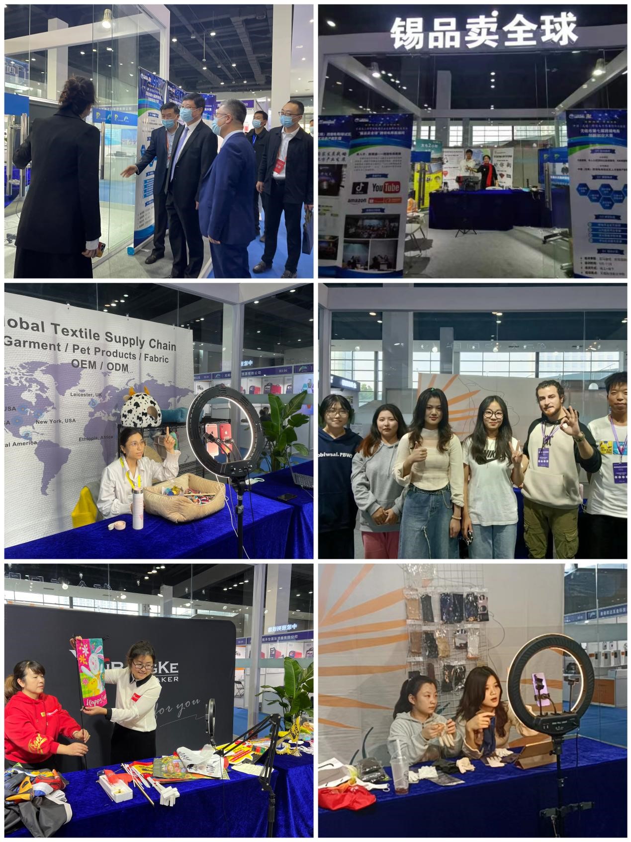 为满足企业“跨境电商+直播电商”转型需求,产教联盟在2022长三角跨境电商行业交易会期间,优选无锡金茂和千柏材料等4家企业和无锡科技职业学院跨境电子商务专业学生团队,参与“锡品卖全球”跨境电商直播间的直播带货展示,得到了领导和企业家们的高度赞扬。