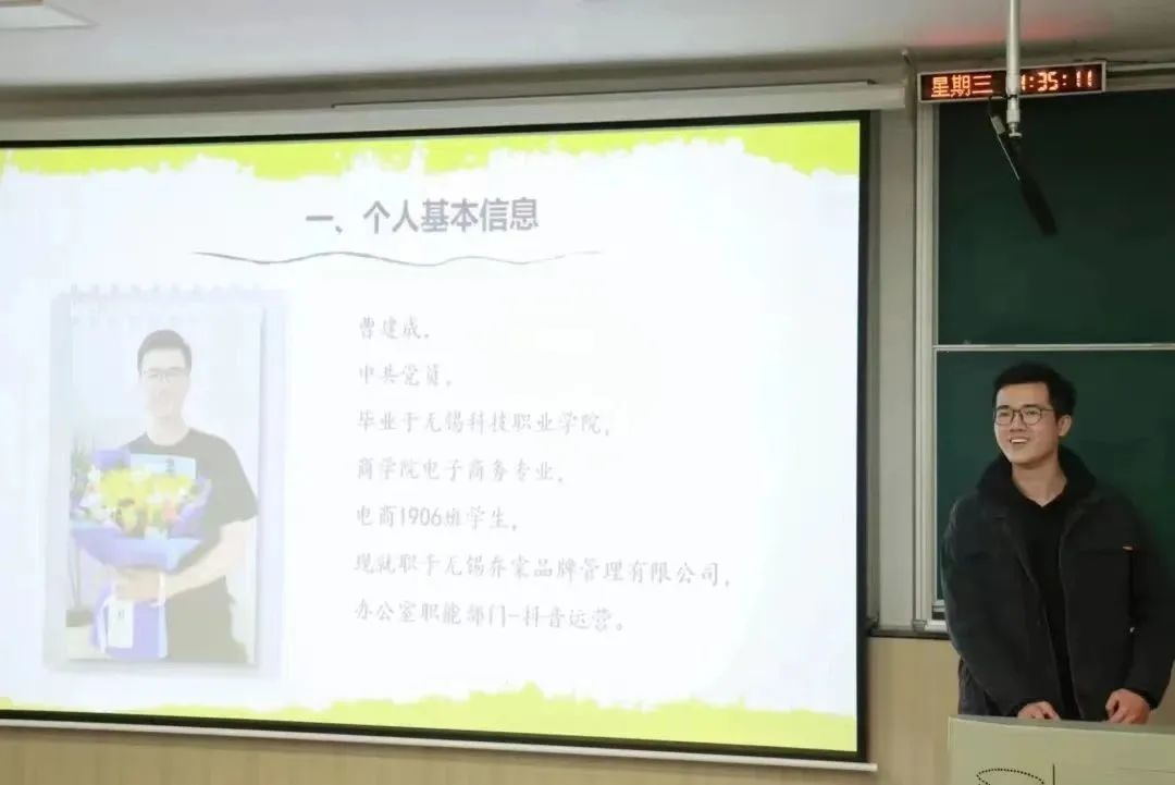 2019级电商专业曹建成在校期间担任学生会主席,获得过省技能大赛“车加工项目”一等奖、优秀学生干部、校综合奖学金二等奖以及市“优秀共青团员”称号等荣誉。曹建成以“我为梦想创造可能”为主题进行分享。他通过自身经历,告诉同学追求热爱的过程中,可能面临各种困难和挑战,必须坚持不懈才能克服困难。同样在未来就业过程中,会面临身份转变、专业对口、就业压力大等难题,这时候就要自己多思考、多沟通、多请教,积极克服就业过程中出现的难题。