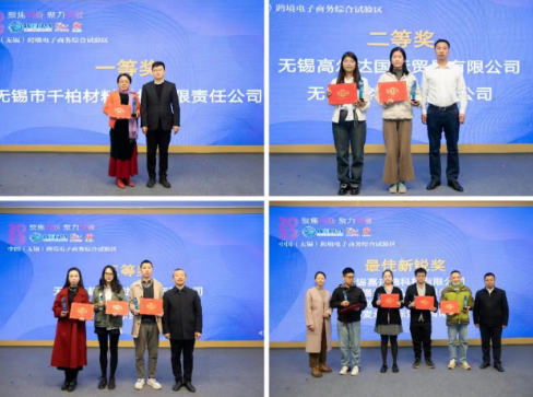 上午,总决赛在学校培训中心以“路演+评审”的方法进行。通过以赛促培,以赛促转,层层遴选,入围的10强企业展现出无锡市跨境电商行业前沿和创新模式。经综合评分,评出一等奖1名、二等奖2名,三等奖3名,最佳新锐奖4名。最终,无锡市千柏材料科技有限责任公司脱颖而出,荣获大赛一等奖。