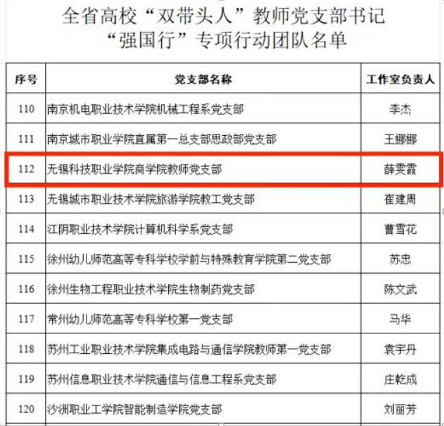 近日,省委教育工委发布了全省高校三级党组织“强基创优”首批建设完成党组织名单和全省高校“双带头人”教师党支部书记“强国行”专项行动团队名单,我院教师党支部顺利通过党建工作样板支部验收,并成功入选高校“双带头人”教师党支部书记“强国行”专项行动团队。