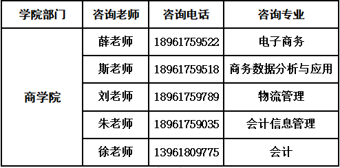 商学院始建于2004年8月,下设三系二室一中心:商务管理系、流程管理系、财税金融系、教学管理办公室、综合办公室、科技与发展合作中心。共有教职工50余人,学生1800多人,教师中有中高级职称的达到80%以上,教师有丰富的参与企业一线工作和进行社会培训的经验。